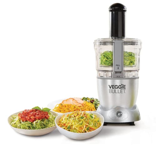 The upgraded VB-102 model from Veggie Bullet brings refined spiralizer and food-processor functions together in a compact design, making veggie noodles and other preps faster and more stylish.